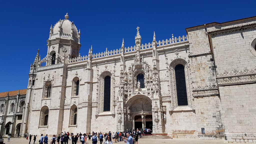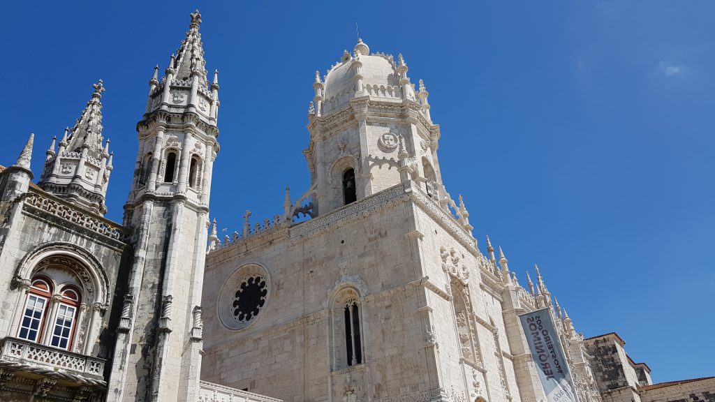 No ano de 1496, D. Manuel mandou dar início à construção da Igreja. Diogo Boitaca (1450-1517) foi o mestre escolhido para desenhar o conjunto arquitetônico (igreja, claustro, dormitórios, oficinas, refeitório e palácio real), obra projetada segundo as linhas do gótico final português, que no séc. XIX passou a ser chamado de “manuelino”. Em 1517, o mestre João de Castilho reformulou o projeto e introduziu elementos da nova linguagem arquitetônica renascentista. Após a morte do rei, o seu sucessor, D. João III, chamou Diogo de Torralva (1540-1551) para orientar os trabalhos. Era vontade de D. Manuel que a nova Igreja continuasse a prestar assistência espiritual aos viajantes que passavam pelas praias do Restelo. Era também sua vontade que nela repousassem seus restos mortais e os de seus descendentes. Para desempenhar estas missões, o monarca chamou os monges da Ordem de São Jerônimo, do Mosteiro da Penha Longa, perto de Sintra, que lá permaneceram até 1833, um ano antes do decreto de extinção das ordens religiosas em Portugal. O lançamento da primeira pedra foi no dia 6 de janeiro de 1501 (ou 1502, não sabem ao certo) – Dia de Reis.