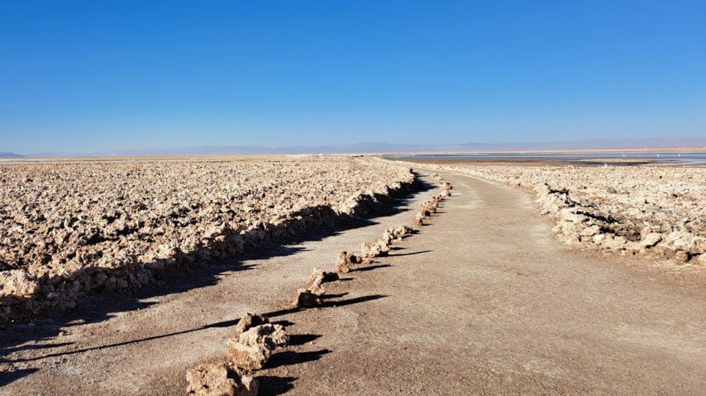 O tour consiste em percorrer uma trilha demarcada de 400 metros. No caminho há cinco estações de observação com placas com informações sobre o Salar. O guia também complementa com mais informações.