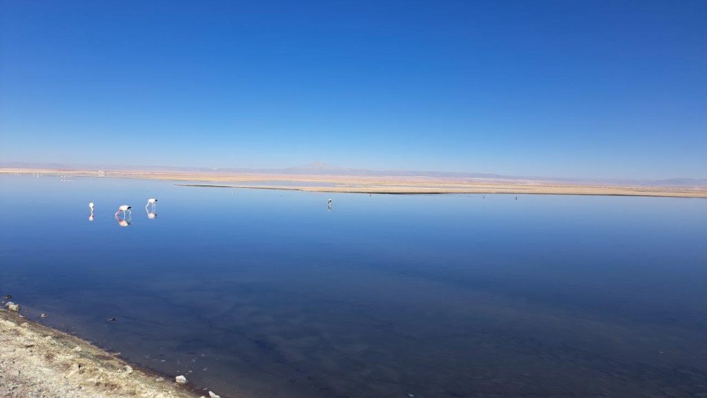 O Salar de Atacama foi o primeiro atrativo do dia, localizado a pouco mais de 50 km ao sul de São Pedro de Atacama.