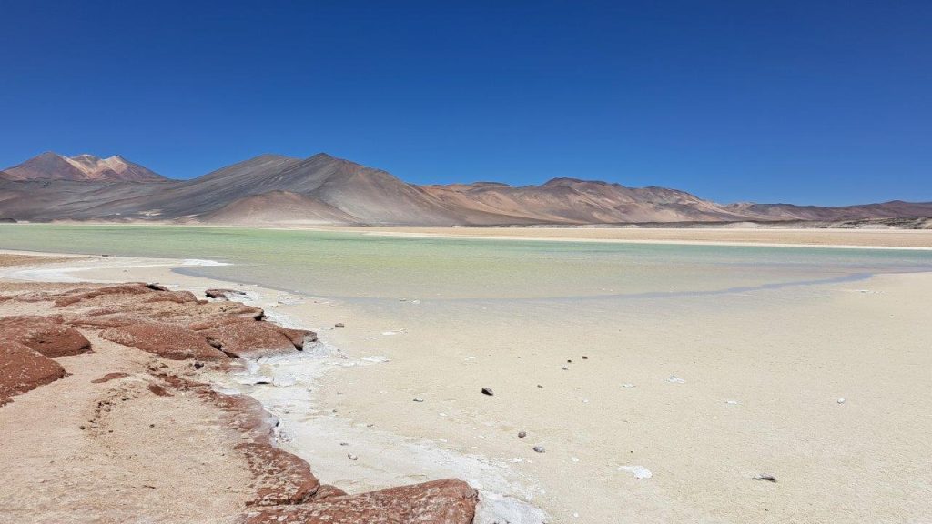 Após o café, seguimos por mais 50 km do Trópico de Capricórnio às Lagunas Altiplânicas: Laguna Miscanti e Laguna Miñiques.